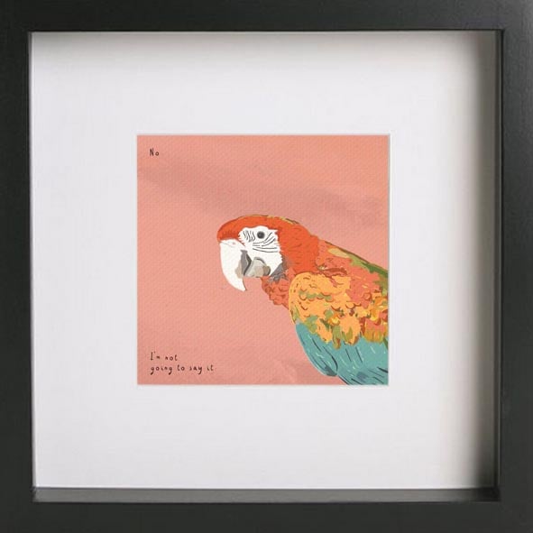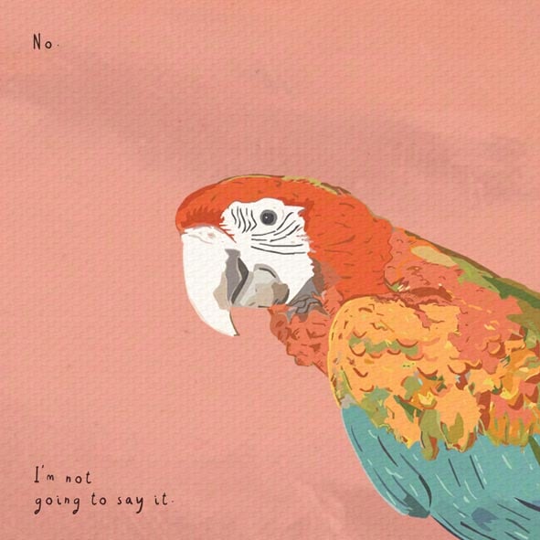 A series of digital paintings featuring snippets of imaginary conversations with animals. 13.5x13.5 cm prints on inkjet on 130g Antique White paper.